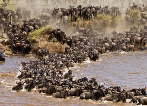 Spend full day exploring the park in search of the big 5.Morning and afternoon game drives are offered. Optional hot air balloon safari can be arranged at an extra cost of US$ 450 per person. The Mara offers wildlife in such variety and abundance with over 450 species of animals have been recorded here. You will easily see lions, rhinos, hippos, crocodiles, wildebeests, zebras, buffalo,giraffe, hyenas, jackals, leopard, many kinds of antelopes and elephant. It is in the Mara that perhaps the most spectacular event of the natural world takes place. This is the annual migration of millions of wildebeest and zebra from the Serengeti (Tanzania) in search of water and pasture. Following on their heels are the predators of the savanna- lion, cheetah, jackal, hyena and vultures.Dinner and overnight at the camp